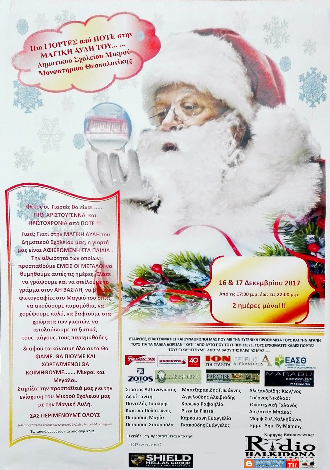 ΜΑΓΙΚΗ ΑΥΛΗ ΤΟΥ… … Δημοτικού Σχολείου Μικρού Μοναστηρίου Θεσσαλονίκης στις 16 & 17 Δεκεμβρίου 2017